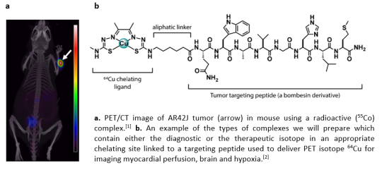 We aim to invent enabling technology for implementing radioactive antimony and cobalt isotopes (119Sb or 58mCo) with decay properties superior to those used currently in the clinic for radiopharmaceutical cancer therapy. As Auger electron emitters with a cell-sized, short range of radioactive decay, new radiopharmaceuticals based on these radioisotopes are predicted to minimize damage to surrounding healthy tissue. Incredibly fortuitously, sister isotopes 117Sb or 55Co will allow monitoring of treatment progress using PET/SPECT-CT scanners. Although the radioactivity of the different isotopes of the same element is different, the chemistry is the same. This means that the same transporter molecules - which we will invent - can be used for different isotopes of the same element.