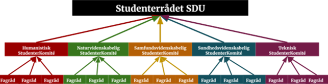 Hver komité ville så udpege tre af deres medlemmer til et Studenterråd, der således i direkte linje ville kunne tale for og repræsentere alle studerende på SDU. Medlemmer af Bestyrelsen og Universitetsrådet ville således kunne drøfte og diskutere sager her, Studenterrådets medlemmer ville kunne høre tingene i deres bagland i fakulteternes komitéer, og sagerne ville således blive repræsentativt belyst
