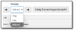 Sæt ”Periode”-feltet øverst til måned Skift til den måned du ønsker at indsende timer for
